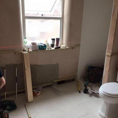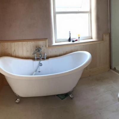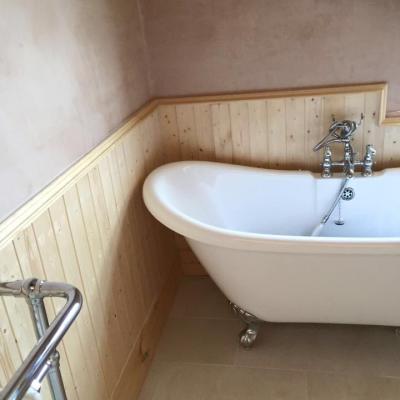 Full bathroom suite with wall panelling, dado rail and skirting boards fitted in this Victorian property by Excel
